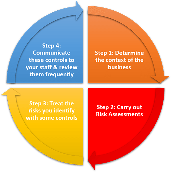 Surrounding all of this is the idea of continuous improvement, think of the PDCA (Plan, Do, Check, Adjust) loop so it's good to think about the process in terms of this diagram like that shown oppositeUnderstanding the steps of Risk Process