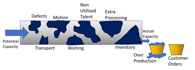 All these wastes block the pipe and overfill the buckets, all steal your time, your resources and your cash from the bottom line making it really hard to deliver what you need to the customer. They all constrain the flow and remove your ability to deliver what the customer needs (no more or less) when they need it at the quality agreed (no more or less)