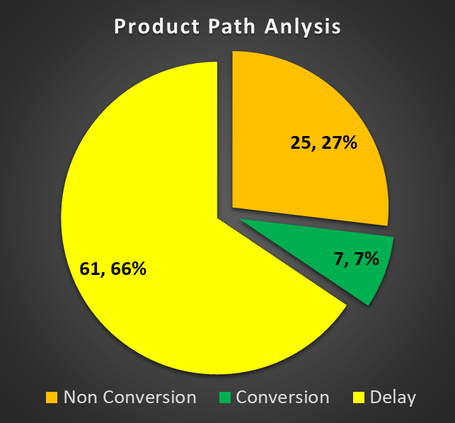Firstly, it visually jumps out what is conversion, that is the green square, the orange diamonds are non-conversions, and the gold stars are delays. Why gold stars? They are typically the quickest wins.