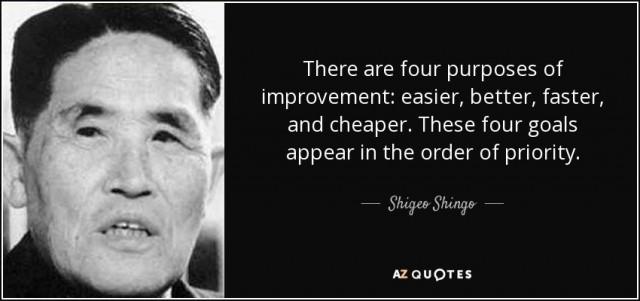 In each case I come back to the same 4 words which are at the very heart of what lean is really about, "Easier, Better, Faster and Cheaper" they are profound, inspiring, directional, simple to say, yet sometimes hard to do, and the best bit is I didn't have to make them up, they are from one of the founders of TPS,Easier