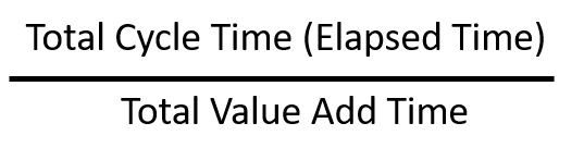 In this case the ratio would be 89.75hrs / 3.5hrs which is 25.64. By comparing these ratio's to other processes you can focus on the largest number 1st to give the biggest bang for the buck. By trending the ratio over time you can track the real improvement in your process. The target of course is to get as close to 1 as possible by reducing the cycle time, in which case the Total Cycle Time would equal the Total Value Added Time, meaning the would be zero waste in the system, Nirvana!